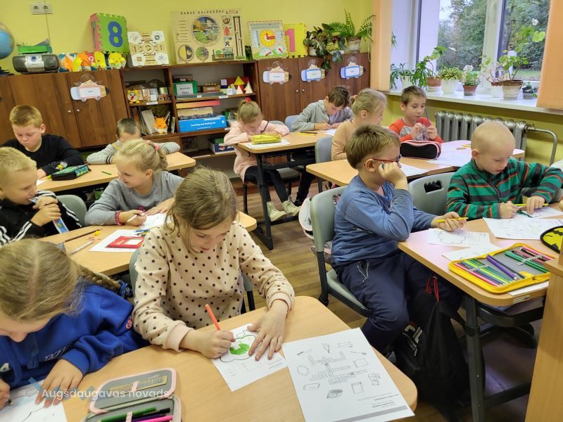 Bibliotekārās nodarbības turpinājumā 1. un 2. klases skolēniem vajadzēja atminēt krustvārdu mīklu pirms gulētiešanas – jāaplūko attēli, kuri saistīti ar gulēšanu, un jāatmin vārdi. Pēc tam skolēni darbojās aktīvi – viņiem bija jāizvēlas kāds no sapņotājiem un jāuzzīmē, par ko tas varētu sapņot.