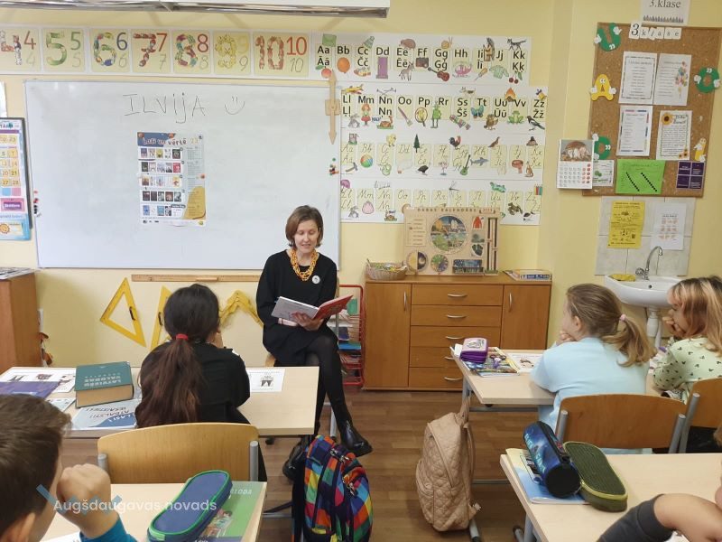 Oktobrī pie Naujenes pamatskolas sākumskolas skolēniem atkal viesojās Naujenes bibliotēkas Bērnu nodaļas bibliotekāre Ilvija GŽIBOVSKA, lai turpinātu “Bērnu žūrija 2023” lasījumus.