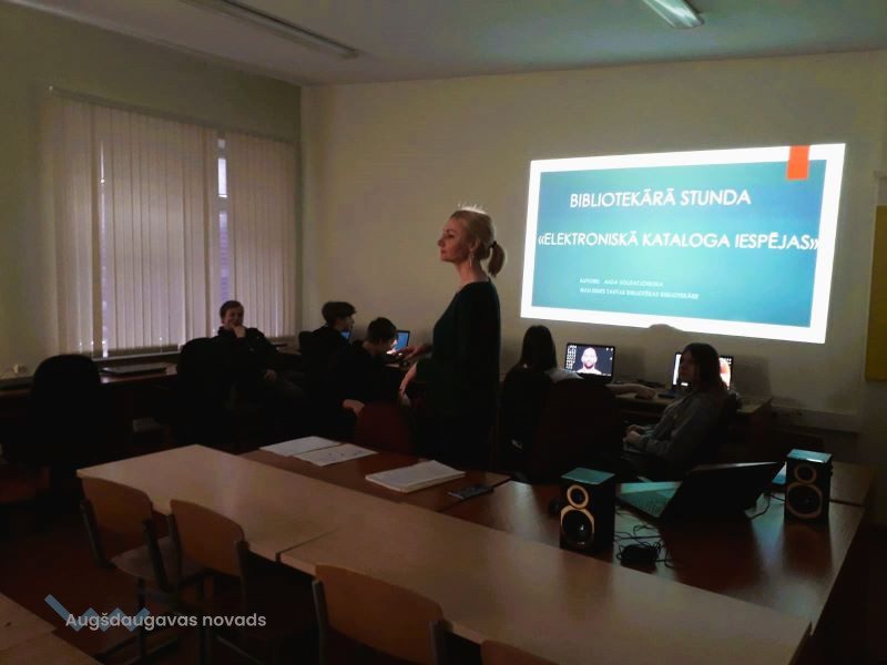 22. martā Pie Naujenes pamatskolas 7. klases skolēniem viesojās Naujenes tautas bibliotēkas Bērnu nodaļas bibliotekāre Aiga SOLDATJONOKA. Nodarbības laika skolēni tika iepazīstināti ar Naujenes bibliotēkas e-pakalpojumiem: elektronisko grāmatu katalogu un e- grāmatu bibliotēku. Audzēkņi iemācījās atrast nepieciešamo grāmatu pēc nosaukuma, autora vai tēmas Augšdaugavas novada bibliotēku elektroniskajā katalogā https://naujene.biblioteka.lv/alise, kā arī noskaidroja vai meklētais izdevums ir bibliotēkas krājumā, vai tas šobrīd ir pieejams, vai arī ir izsniegts lasītājam.