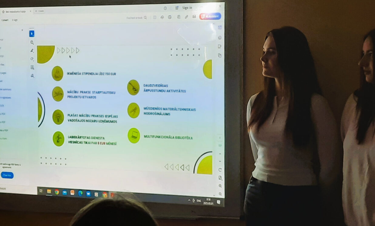 Īpaši interesanti mūsu skolēniem bija dzirdēt divu mūsu skolas absolvenšu – Innas Ivanovas un Oļesjas Fedjašas – stāstus. Viņas dalījās savā pieredzē par mācībām tehnikumā, pastāstīja, kā izvēlējās savu profesiju, un atklāja, kā viņām klājas tagad. Viņu stāsti lika aizdomāties par nākotnes iespējām, kas mūs var sagaidīt pēc 9. klases.