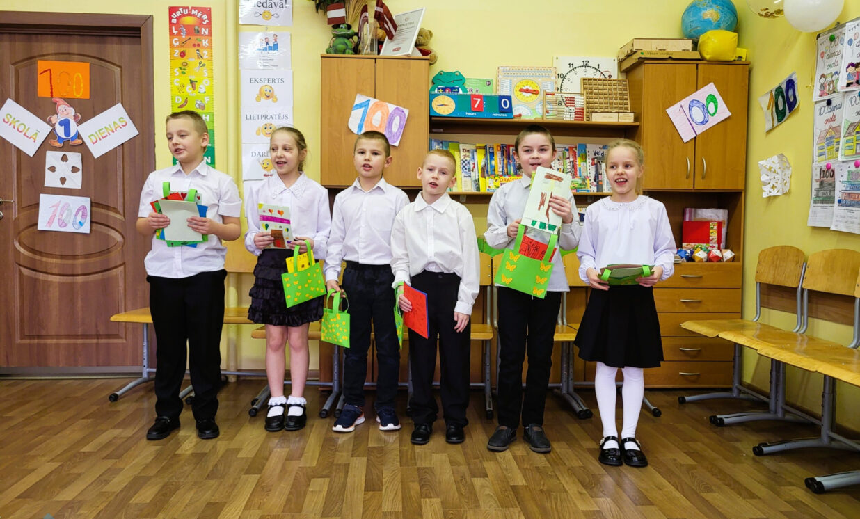 Svētku dienā 1. klasē valdīja īpaša gaisotne – to rotāja bērnu zīmējumi un plakāti ar skaitli 100, bet paši pirmklasnieki bija sagatavojuši priekšnesumus, lai parādītu, ko šajā laikā iemācījušies. Svētku laikā bērni piedalījās aizraujošās staciju aktivitātēs, kurās demonstrēja savas jauniegūtās zināšanas un prasmes. Spēles un uzdevumi padarīja šo dienu neaizmirstamu!