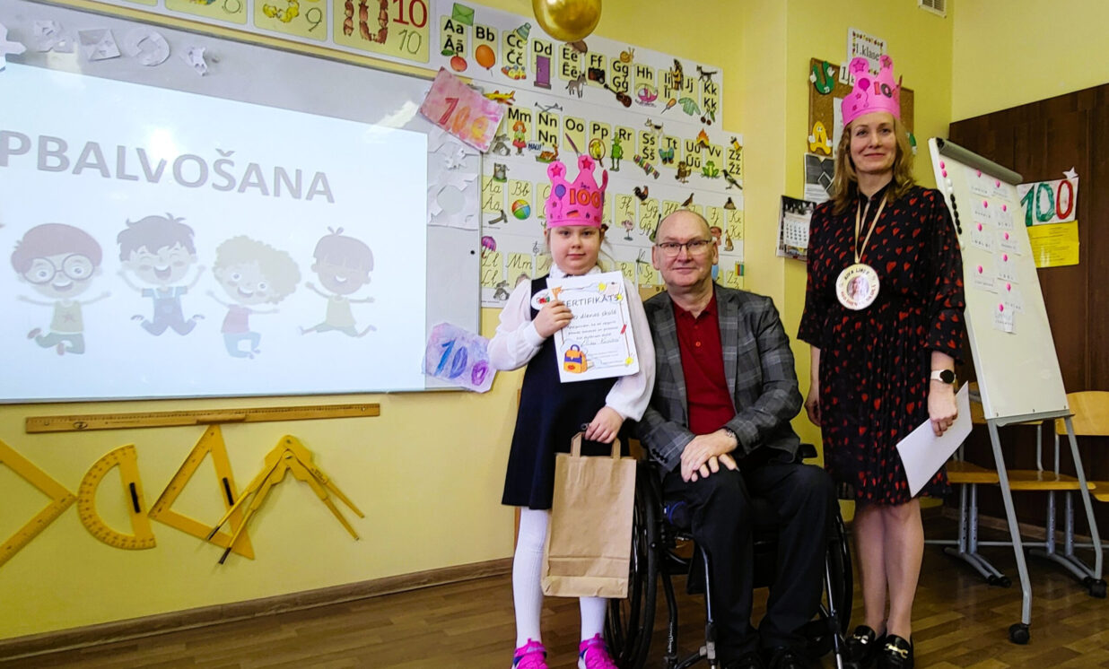 Naujenes pamatskolas pirmklasnieki svin 100 dienas skolā