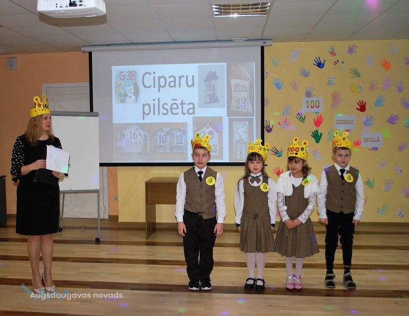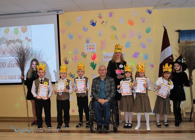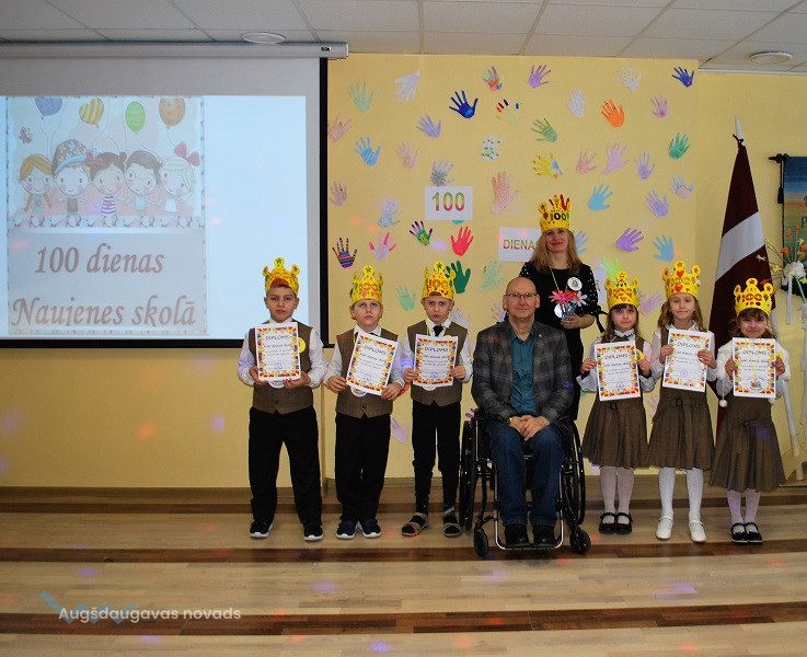 Naujenes pamatskolas pirmklasnieki svin pirmās 100 dienas skolā