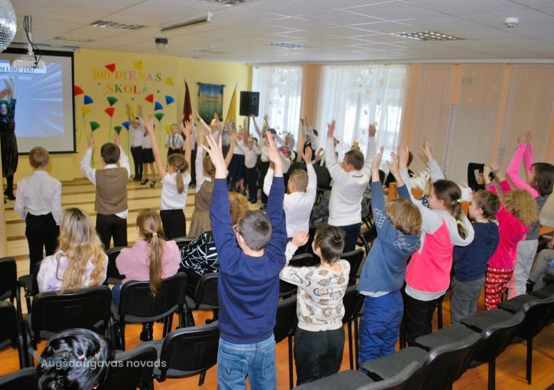 Februāris ir ne tikai Sveču un Puteņu mēnesis, bet arī mēnesis, kad savus pirmos lielos svētkus svin pirmklasnieki. Tās ir pirmo 100 dienu skolā svinības. Šogad Naujenes pamatskolā pirmklasnieku simtā diena tika atzīmēta 3.februārī.