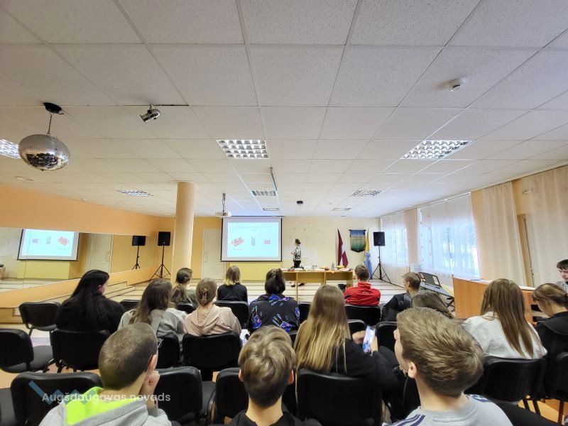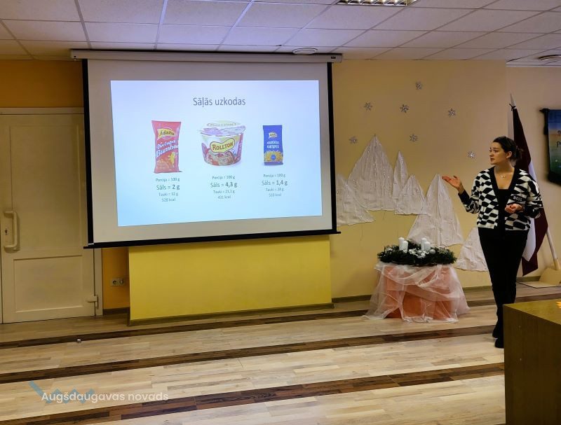 Projekta Nr. 9.2.4.2/16/I/070 “Pasākumi vietējas sabiedrības veselības veicināšanai un slimību profilaksei Augšdaugavas novadā” ietvaros 4. decembrī Naujenes pamatskolas 7. – 9. klases skolēni tikās ar uztura speciālisti Danu PITERONOKU. Viņa skolēniem pastāstīja par veselīga uztura pamatprincipiem, sabalansēta uztura ideju, galvenajām uzturvielām, kā arī pētīja iecienīto našķu un uzkodu sastāvu, iemācīja lasīt produktu etiķetes, pievērst uzmanību produktu sastāvam, kā arī izvēlēties veselīgākas uzkodas.