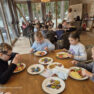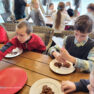 Pēc labi paveikta darba skolēni baudīja maltīti restorāna telpās. Šajā laikā viņi ne tikai mielojās, bet arī apguva galda etiķetes pamatus. Tukšie šķīvji bija apliecinājums tam, ka maltīte bija garšīga!