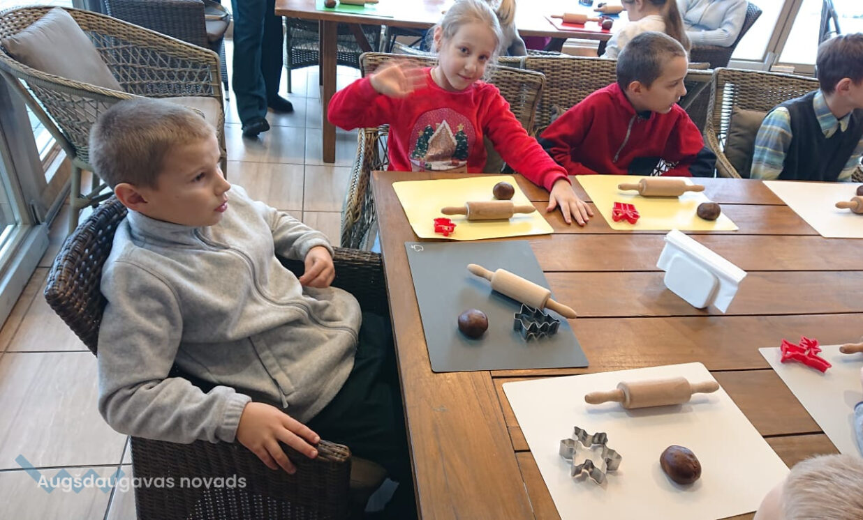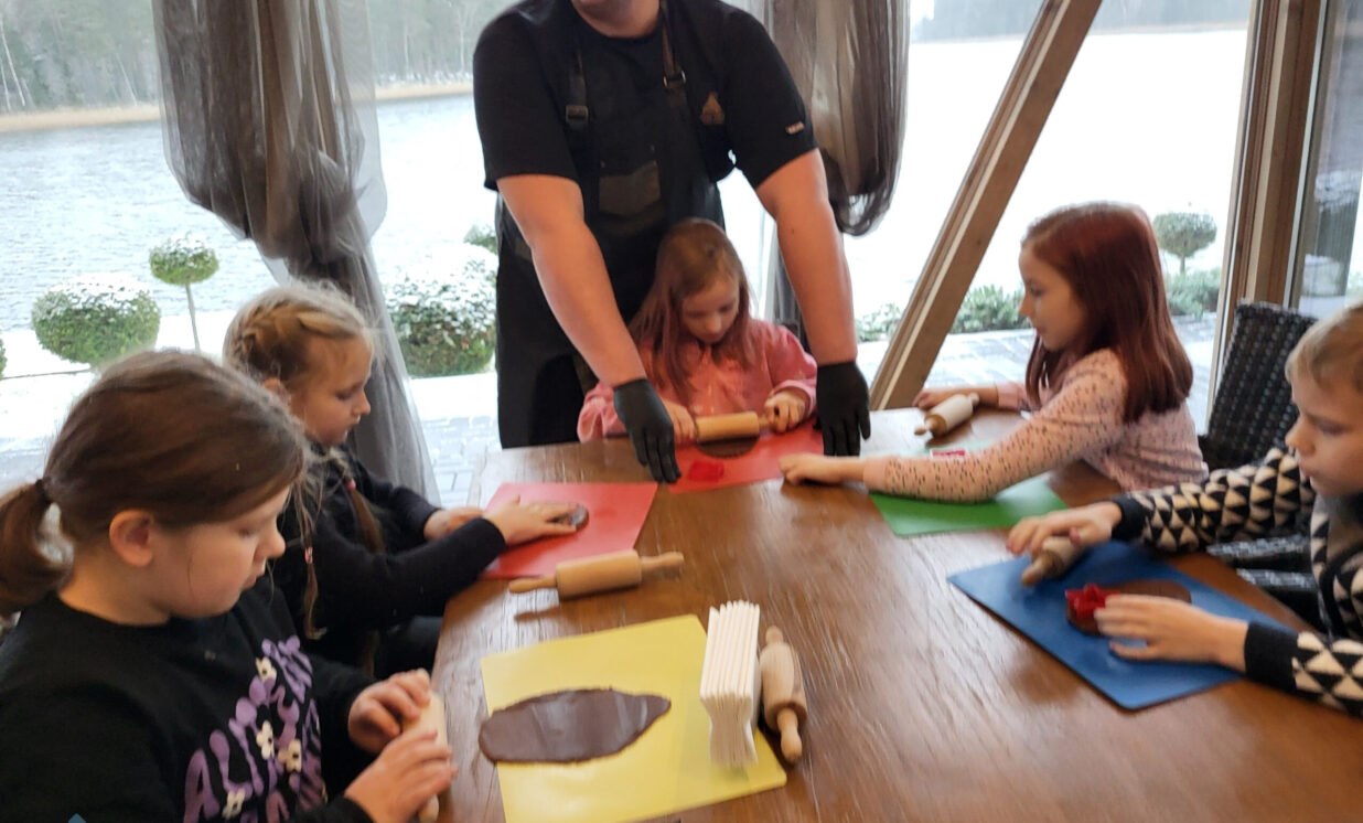 Pirmais piedzīvojums bija tikšanās ar mini zoo iemītniekiem – bērni ar lielu prieku apskatīja dzīvniekus tos Terases šefpavāra vadībā paši veltnēja mīklu un izgrieza dažādas formas piparkūkas . Īpaši jautrs un aizraujošs bija piparkūku dekorēšanas posms, kurā katrs varēja izpausties pēc savām prasmēm un radošās iztēles.