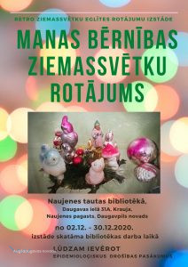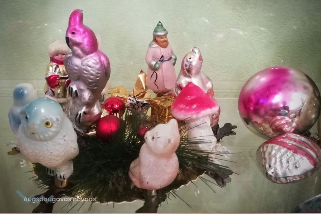 Naujenes tautas bibliotēkā atklāta retro eglīšu rotājumu izstāde