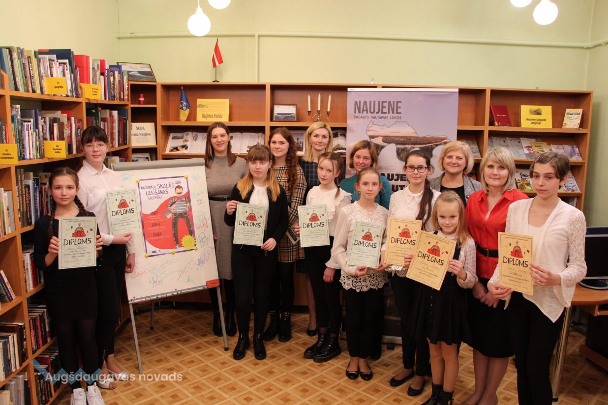 Par Naujenes pagasta Skaļās lasīšanas čempionēm kļuva Naujenes pamatskolas 5. klases skolniece DIĀNA LAPIŅA, kura lasīja fragmentu no Dangoles Kandrotienes grāmatas “Skapja stāsti” un Lāču pamatskolas 6. klases skolniece ALISIJA OVČIŅŅIKOVA, kura izvēlējusies fragmentu no Eleonoras H. Porteres grāmatas “Polianna”. Meitenes pārstāvēs Naujenes pagastu reģionālajā skaļās lasīšanās finālā Daugavpils novada kultūras centrā 19. martā. Naujenes tautas bibliotēkas Lasīšanas sacensības I kārtas fināla 2.vietu saņēma Lāču pamatskolas 6. klases skolniece ALĪNA ĻEONOVA un 3. vietu Naujenes pamatskolas 6. klases skolniece KSENIJA PANOVSKA. Diplomus par dalību žūrija pasniedza Daugavpils 3. vidusskolas skolniecei Olgai Jukumai, Daugavpils Tehnoloģiju liceja skolniecei Annai Šostakai, Lāču pamatskolas skolniecei Viktorijai Silovai un Naujenes pamatskolas skolniecēm Anželikai Siņķevičai un Evelīnai Ņukšai.