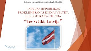 Novembris Latvijā ir svētku mēnesis, kad atceramies savas valsts vēsturi, godinām tautas varoņus un ikvienam ir iespēja izteikt labus vēlējumus savai valstij, dzimšanas dienā! 17. novembrī svētku noskaņa valdīja arī Naujenes pamatskolā. Naujenes tautas bibliotēkas Bērnu nodaļa organizēja tiešsaistes bibliotekāro stundu “Tev svētki, Latvija!” 1.-3. klases audzēkņiem, veltītu Latvijas Republikas Proklamēšanas dienai. Pasākumu vadīja Laura Grigorjeva Daugavpils Universitātes 3. kursa studente, kura pašlaik iziet praksi Naujenes tautas bibliotēkā. Skolēni noskatījās video filmas fragmentu, kur īsumā tika izskaidrots, kā tad Latvija kļuva par neatkarīgu valsti, un atbildēja uz viktorīnas jautājumiem. Laura pastāstīja bērniem, kādas pašlaik ir Latvijas Republikas Proklamēšanas dienas svinēšanas tradīcijas. Tika minēts gan lāpu gājiens, gan svētku salūts, gan prezidenta un citu valsts amatpersonu svinīga uzruna u.c. Par Latvijas valsts svētku svinēšanas tradīcijām ģimenes lokā, bērni uzzināja no Līgas Rozentāles grāmatas “Dāvana Latvijai”. Laura nolasīja priekšā fragmentu no grāmatas, pēc kura visi kopā secinājām, ka mēs visi kopā, katru dienu veidojam savu Latviju. Grāmatas stāsts liek mums visiem aizdomāties “ko Tu un Tava ģimene var darīt, lai Latvija kļūtu skaistāka un labāka?”, ar ko mūsu Latvija ir īpaša un ko mēs varam uzdāvināt Latvijai viņas 103. gadadienā. Naujenes pamatskolas bērni, ka dāvanu Latvijai, sagatavoja skaisto muzikālo priekšnesumu. Tajā skanēja skolēnu vēlējumi Latvijai, tās dzimšanas dienā!