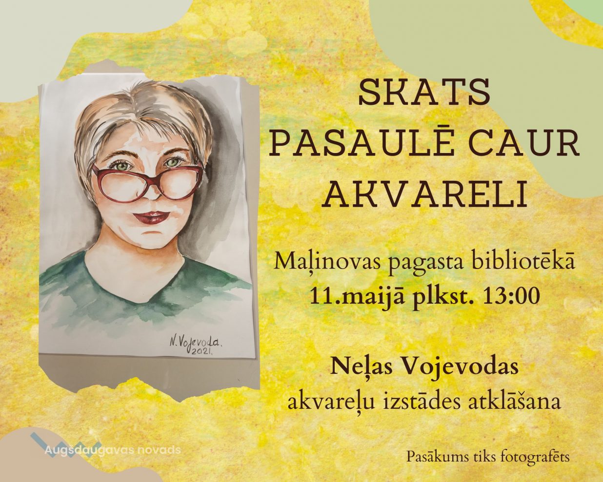 Neļas Vojevodas akvareļu izstāde Maļinovā03.05.2023AKTUĀLI Neļas Vojevodas akvareļu izstāde skatāma Maļinovas pagasta bibliotēkā no 02.maija līdz 02.jūlijam. Izstādes atklāšanas pasākums, tikšanās ar izstādes autori 11.maijā plkst. 13:00. Visi laipni gaidīti!