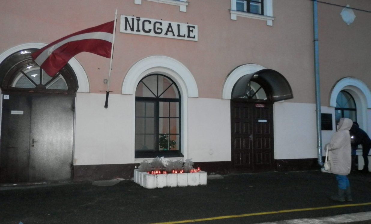 Pie Nīcgales 11. novembrī Lāčplēša dienā, godinot varoņu piemiņu, vienoti ar visas Latvijas patriotiem, nīcgalieši iededza svecītes. Stacijas priekšniece Lilija Lazdāne (Sibīrijas bērns) iepazīstināja ar vēstures liecībām par Nīcgales stacijas vēsturi. Bibliotēka no Lilijas Lazdānes saņēma dāvanu - senas grāmatas no pirmās brīvvalsts laikiem, par varoņu laiku liecina 1928. gada Izglītības Ministrijas izdevums ir "1918.-1928. Latvijas brīvības cīņas un sasniegumi".