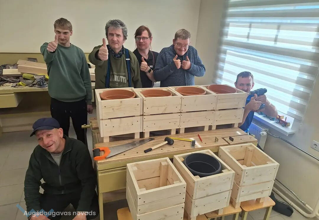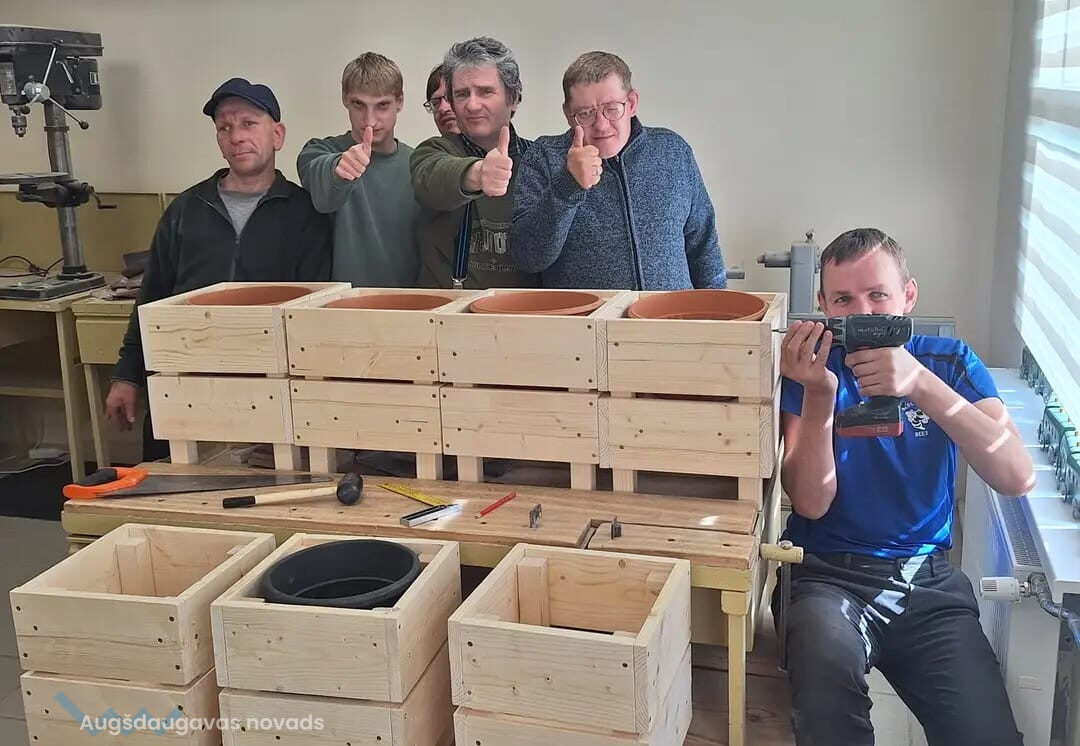 Nīcgales grupu dzīvokļu iemītnieki darina puķu kastes