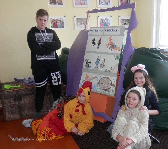 16. martā jaunie aktieri savu darbu izrādīja bērnudārza audzēkņiem. Tie noskatījās pasaku par Daugavas rakšanu un deklamēja tautasdziesmas. Mazie skatītāji bija iemācījušies tautasdziesmu par Daugavu un to skanīgi kopā nodeklamēja. Paldies lasītājiem – aktieriem par radošo izdomu un darbu, dāvājot prieku mazajiem draugiem no bērnudārza.