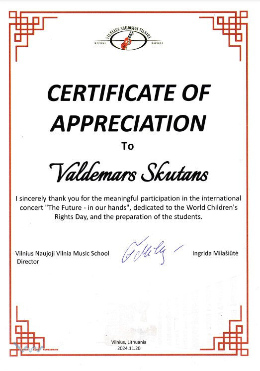 Katru gadu koncertā piedalās bērni ne tikai no Lietuvas, bet arī no citām valstīm. Šogad koncertā piedalījās bērni no Polijas mūzikas skolām, kā arī divas mūzikas skolas no Latvijas t.sk. pārstāvji no Naujenes Mūzikas un mākslas skolas.