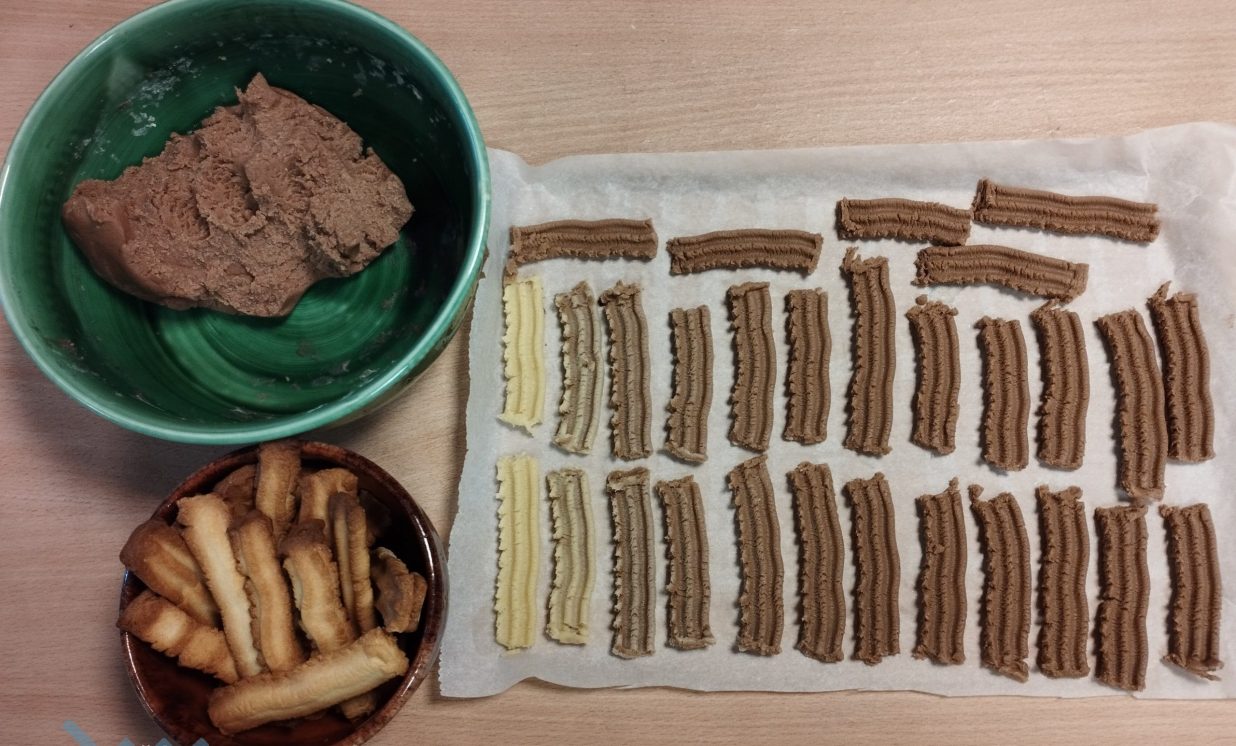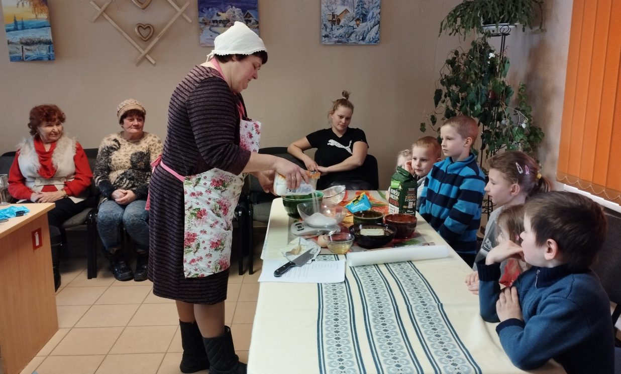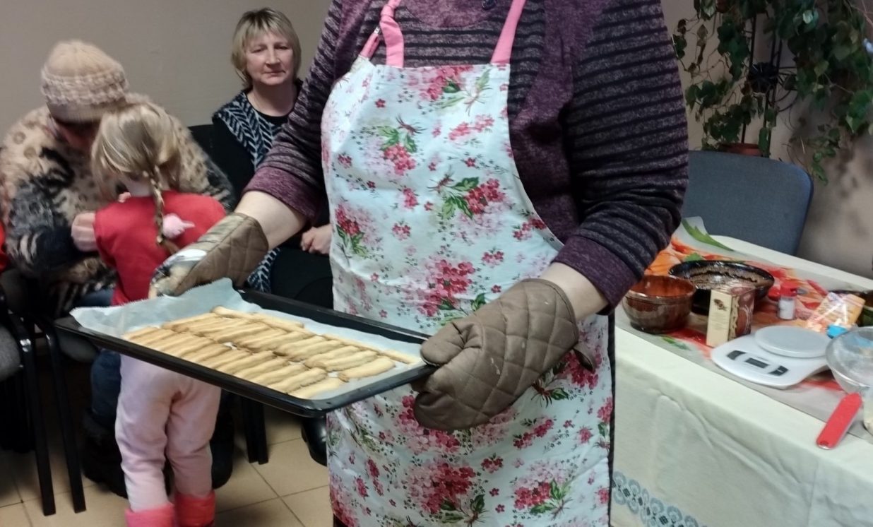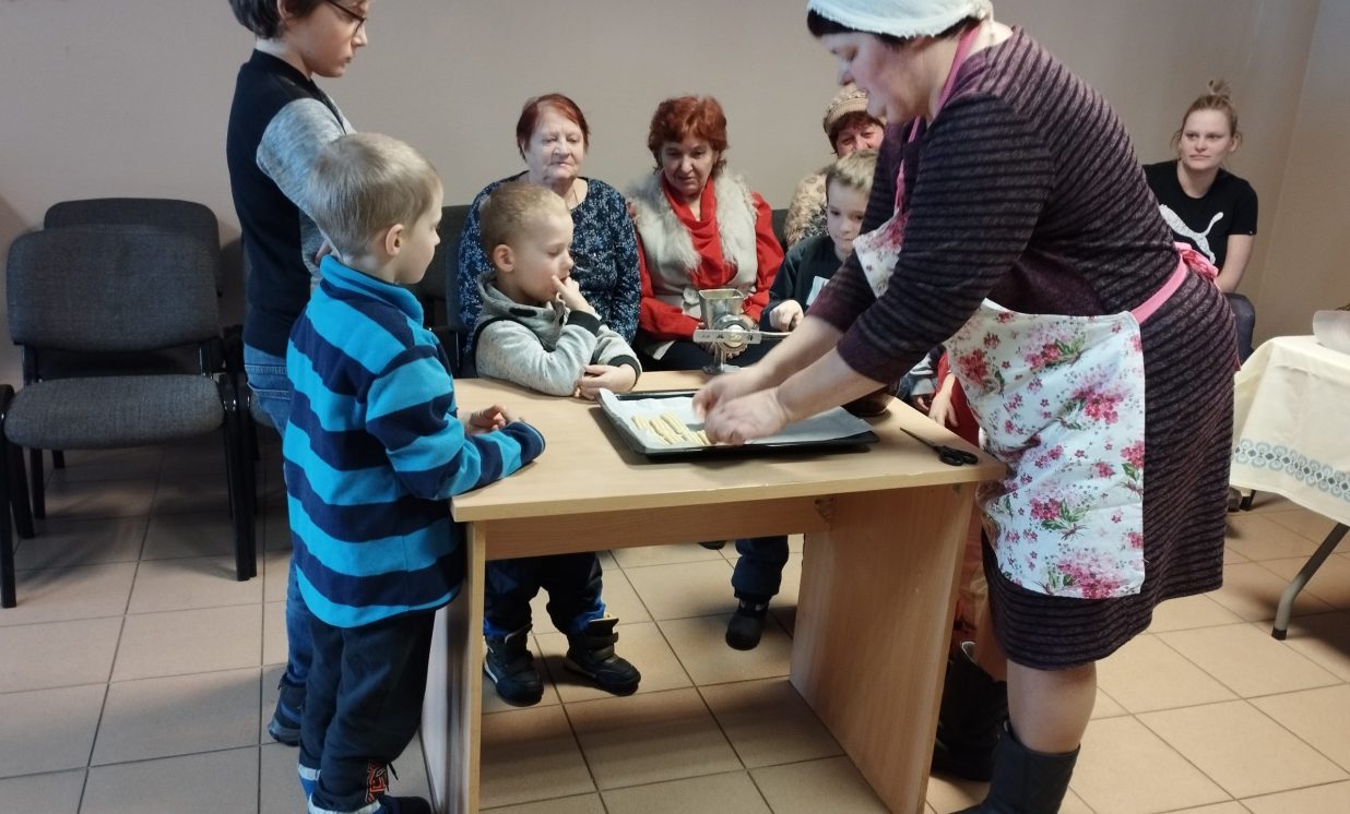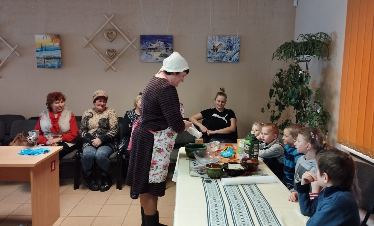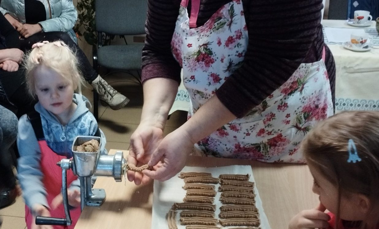6.marta pēcpusdienā Maļinovas pagasta saieta namā gaisā virmoja kārdinošas smaržas un pagasta iedzīvotāji, gan lieli, gan mazi pulcējās uz radošu darbnīcu. Maļinovas pagasta bibliotēkas vadītāja Elvīra Kokina sadarbībā ar Saieta nama vadītāju Natāliju Davidovu nolēma atcerēties aizmirstas receptes, bez kurām agrāk neiztika nevienos saviesīgos pasākumos tie ir Tējas cepumi kurus gatavojot izmantoja gaļas maļamo mašīnu un speciālas formiņas.( Izrādās, ka mehānisko gaļas maļamo mašīnu atrast ir problēma, jo lielākā daļa izmanto elektriskās, paldies Ilonai Jefimovai ar kuras gādību Bibliotēkas novadpētniecības stūrītī jauns eksponāts – gaļas maļamā mašīna, ar roku darbināma.) Manā bērnībā mamma šos cepumus cepa vai ik sestdienu, bērnībā man šie cepumi ne pārāk garšoja, nu bet tagad ir gardi gan. Radoša darbošanās sevišķi ieinteresēja bērnus kuri šāda veida cepumus ar vecākiem nebija cepuši. Vispirms gatavojām mīklu. Mīkla tika gatavota divas porcijas un otrā porcijā pievienojām kakao garšas dažādībai. Pirmo mīklas porciju gatavojot stāstīju ko un cik lieku, un jau otro porciju gatavojot katru soli jautājām bērniem, kuri priecīgi komentēja kas un kā jādara. Kad sagatavojām mīklu sākās pats interesantākais posms cepumu gatavošana caur gaļas mašīnu, bērni tika nostādīti rindā, jo gaļas mašīnas rokturi griezt gribēja visi bez izņēmuma, un nogaršot mīklas gabaliņu. Un tās minūtes kas lēni vilkās kad cepumi tika ielikti cepeškrāsnī, tā vien likās ka jau gatavi. Un kad smarža sāka kairināt degunu, tāds gandarījums par rezultātu. Cepumi sanāca ļoti garšīgi jo tika darīts ar mīlestību un tik daudzu mazu rociņu palīdzību. Paldies aktīvajiem pagasta iedzīvotājiem par dalību.
