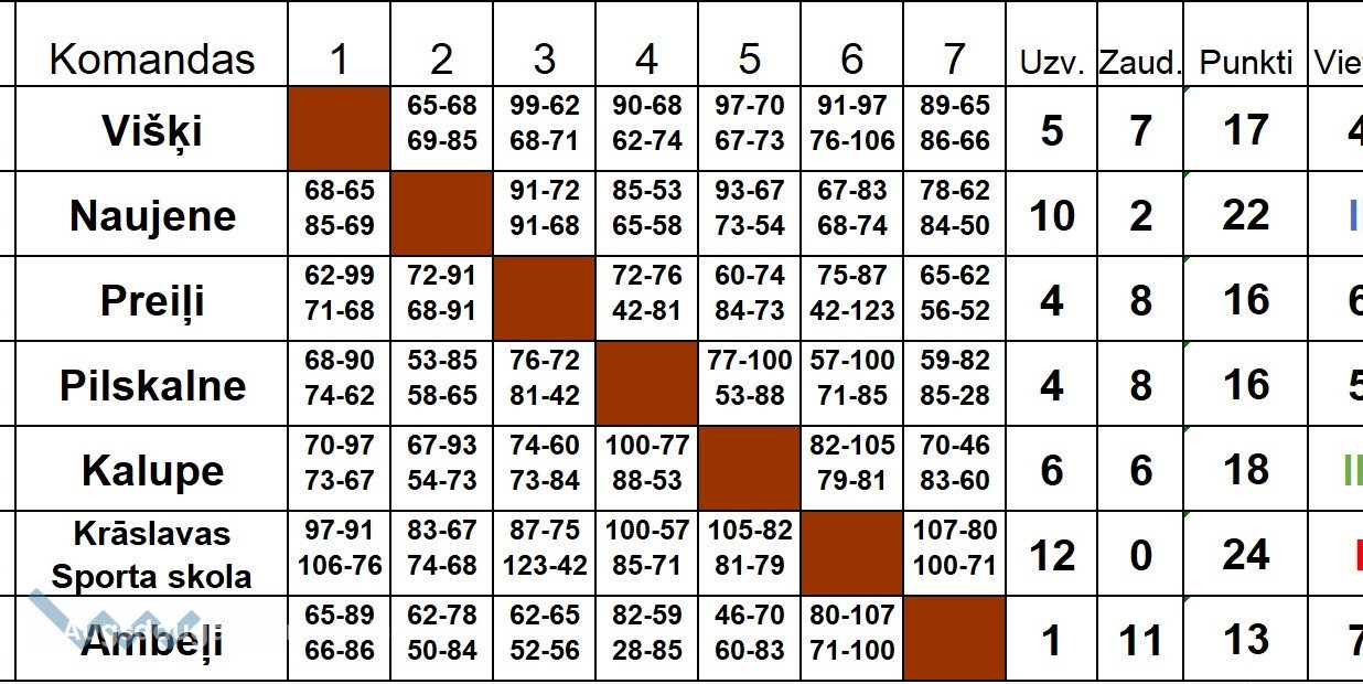 Pēc spēļu izskaņas tika saskaitīti kopējie rezultāti, kā arī apbalvoti uzvarētāji. Turnīra tabulas rezultāti ir sekojoši: I godalgoto vietu ar 12 uzvarām, bez neviena zaudējuma un sakrātiem 24 punktiem iegūst Krāslavas sporta skola. II vietā ierindojas Naujenes komanda ar 10 uzvarām, 2 zaudējumiem un iegūtiem 22 punktiem. III palika Kalupieši ar 6 uzvarām, 6 zaudējumiem un iegūtiem 18 punktiem. Rezultatīvākie spēlētāji komandās - Maksims Gurjančiks (Višķi), Ēriks Kreipāns (Naujene), Nauris Lazda (Preiļi), Agris Plinte (Pilskalne), Vilmārs Settarovs (Kalupe), Lauris Pļavnieks (Krāslavas Sporta skola). Jānis Kļavinskis (Ambeļi). Turnīra kopējie spēļu un spēlētāju rezultāti ir pieejami šeit. Apsveicam uzvarētājus!
