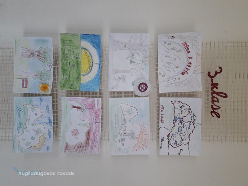 Attēlojot dzimteni, bērni zīmēja karogu un karti, kā arī sevi un svētku salūtu, savu māju un skolu, dabas skatus un dzīvniekus.
