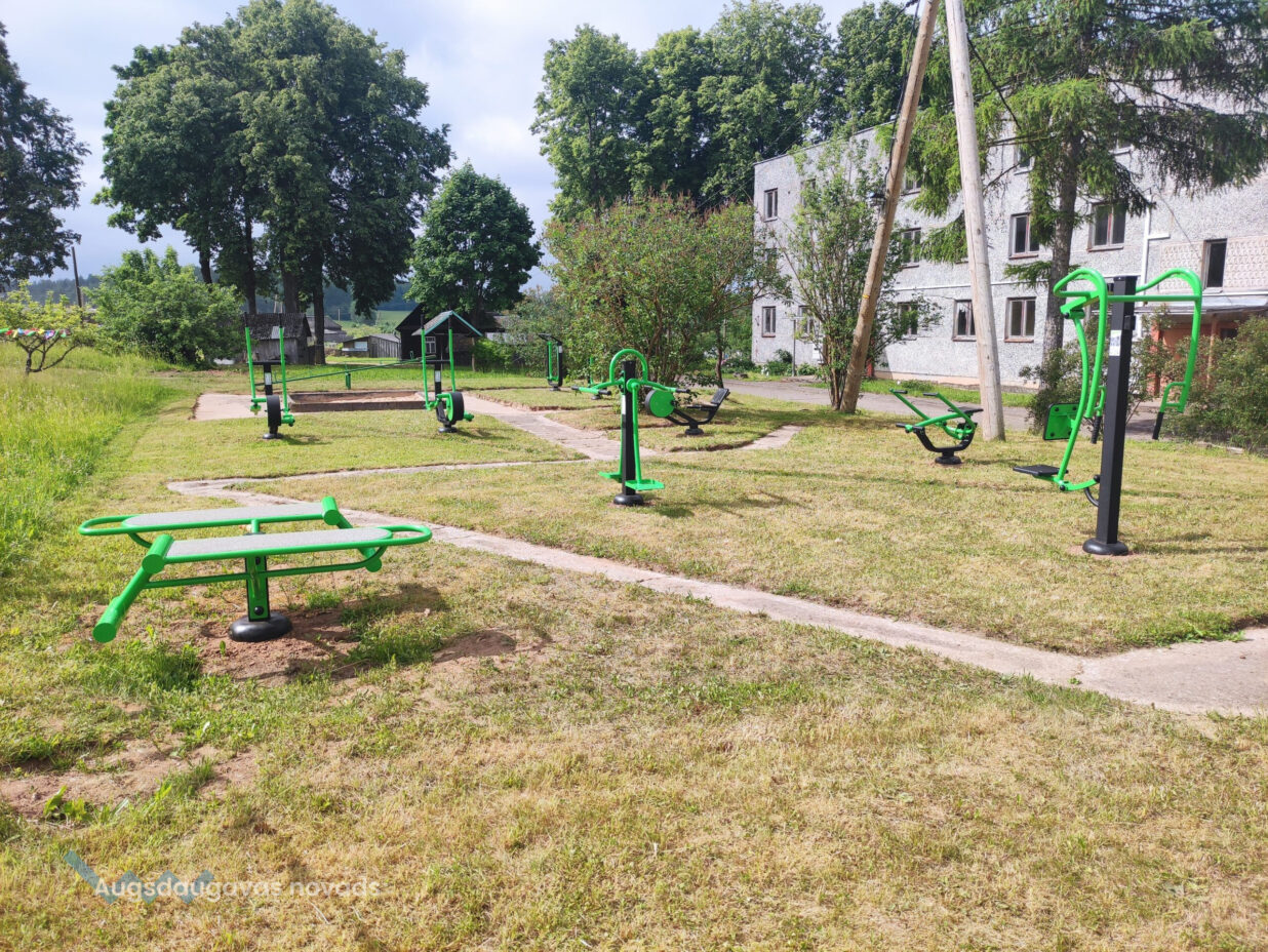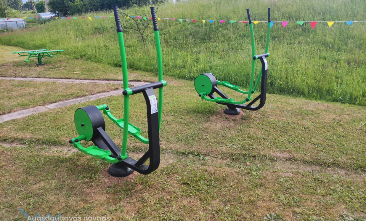 Projektā tika uzstādīti 9 brīvdabas āra trenažieri - orbitrek eliptiskais trenažieris, airēšanas un gurnu trenažieris, trenažieris vilkšanai no priekšas, velotrenažieris, vēdera preses trenažieris un gaisa gājējs.