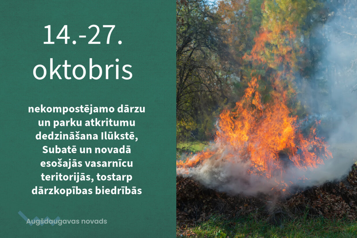 3. oktobra Augšdaugavas novada pašvaldības ārkārtas domes sēdē deputāti atbalstīja priekšlikumu noteikt laika posmu no 14. līdz 27. oktobrim, kad pieļaujama nekompostējamo dārzu un parku atkritumu dedzināšana Ilūkstē, Subatē un novadā esošajās vasarnīcu teritorijās, tostarp dārzkopības biedrībās. Ja attiecīgajā laika posmā iestāsies ilgstošs nokrišņu periods, termiņš tiek pagarināts līdz 2024.gada 3. novembrim.