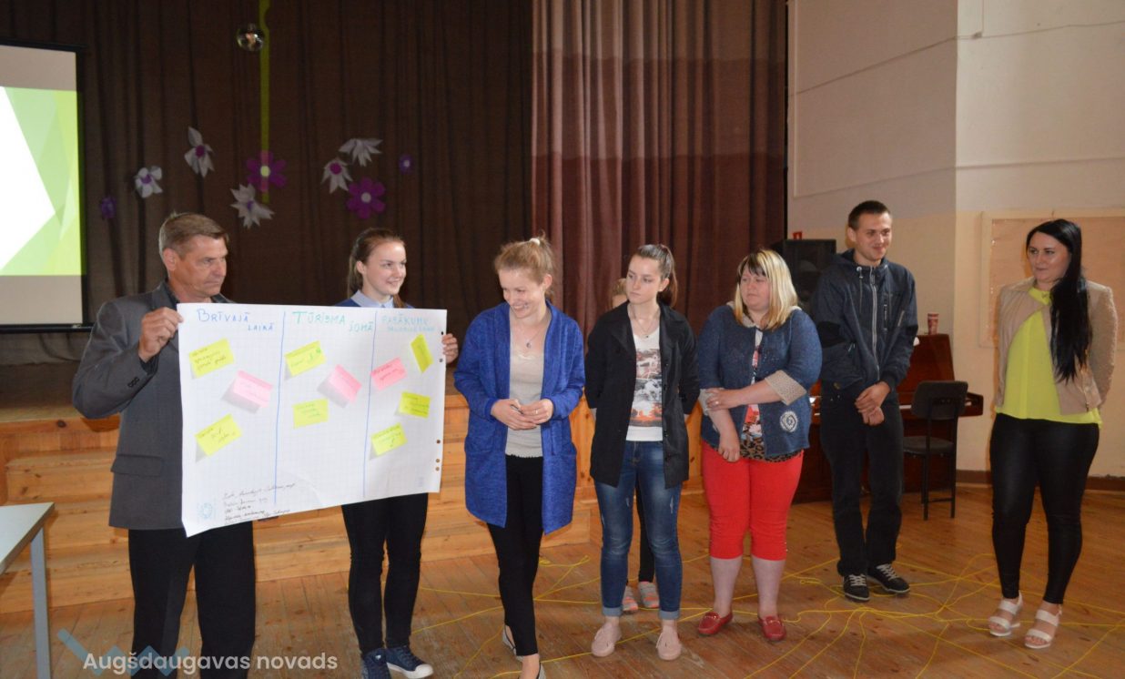 Tikšanās laikā jaunieši tika sadalīti trīs grupas. Jauniešiem vajadzēja iejusties Daugavpils novada domes deputātu vietās un pārdomāt jautājumus un izdomāt risinājumus problēmām, kuras viņi varētu risināt brīvā laika jomā, tūrisma un kultūras jomā, kā arī sabiedrības labā. No visām šīm idejām jauniešiem tika dots uzdevums izvēlēties vienu, kuru viņi varētu īstenot uz brīvprātīgā darba pamata, veidojot sadarbību starp pagastiem un ieguldot pēc iespējas mazāk finanšu līdzekļus. Kā rezultātā tiks stādīti koku stādi, kurus jauniešu iegūs par brīvprātīgi paveikto darbu koku audzētavās, labiekārtoti sporta laukumi, rīkotas sporta spēles, akustiskie vakari. Jauniešiem sava darba rezultātus būs jāprezentē projekta noslēguma pasākumā 30. septembrī profesiju naktī „Brīvprātīgs un atzīts”, kas norisināsies Špoģu vidusskolā.