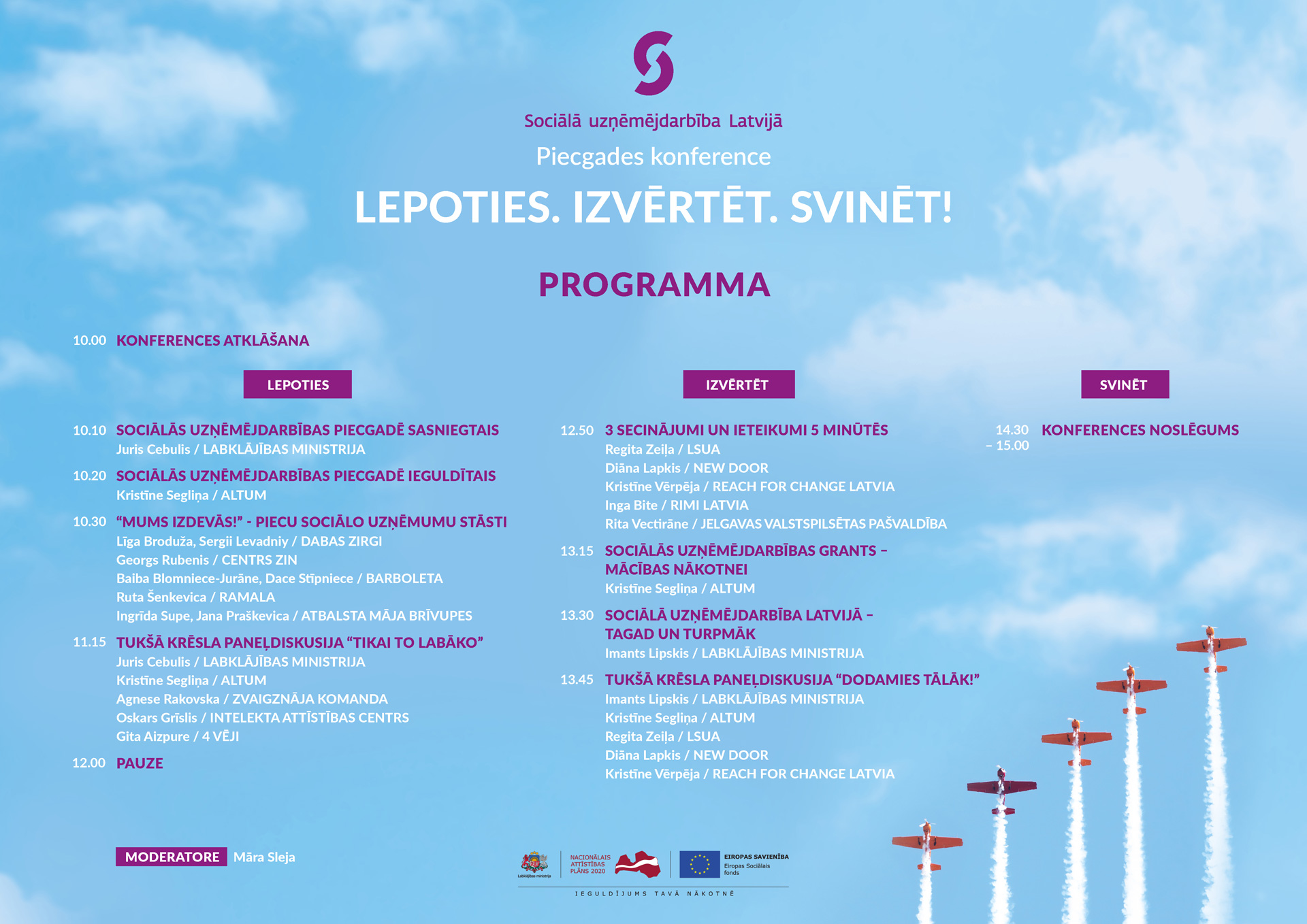 Visi minētie pasākumi ir daļa no Labklājības ministrijas sociālās uzņēmējdarbības aktivitāšu cikla “Attīstām sociālo uzņēmējdarbību kopā!”, ko finansē Eiropas Sociālais fonds. Plašāka informācija un saites uz dalības reģistrācijas anketām pieejamas www.sua.lv/kopa.