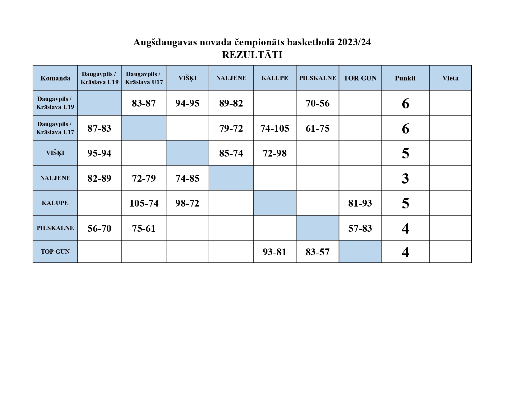 Rezultatīvākie spēlētāji Daugavpils/Krāslava U19 komandā: R. Nikolajevs un R. Safins (katram pa 20 punktiem).