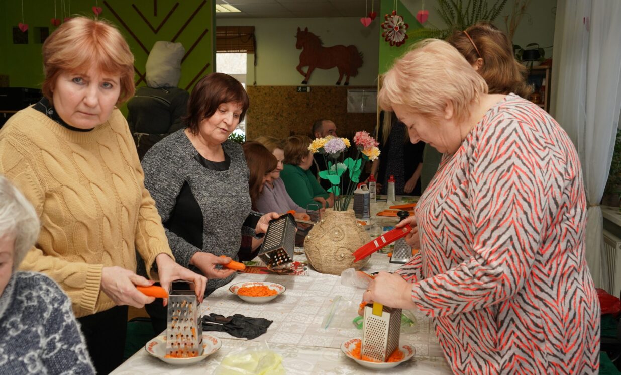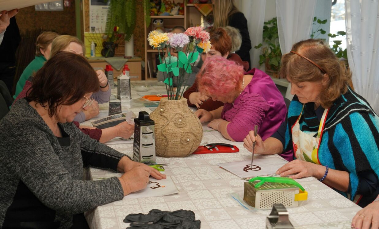 “Pirms gada no Svetlanas nāca ideja senioriem reizi nedēļā braukt uz praktiskām nodarbībām, lai nebūtu vientuļi, lai būtu vienreiz nedēļā iziešana cilvēkos. Brauc Kalupe, Nīcgale, Dubna, brauc no Naujenes un Višķiem. Ar to transportu ir tā, ka mēs braucam pašas, sievietes, kuras vada auto, brauc un ved pārējos,” saka senioru biedrības “Čaklās skudriņas” vadītāja Vija Leguša. Viņa uzsver, ka kopīga darbošanās ar centra klientiem nāk par labu visiem. “Mēs visi esam cilvēki, un visiem mums zināmos gados iestājas vēlme palīdzēt citiem. Ja mēs saviem jau esam palīdzējuši, varbūt varam arī kādam citam palīdzēt, kaut ko izdarīt labu.”