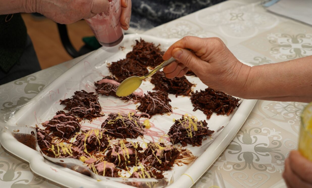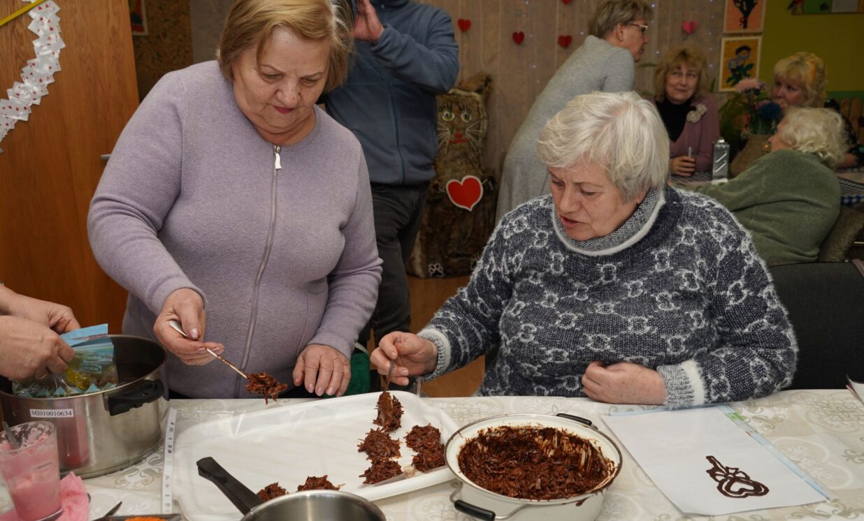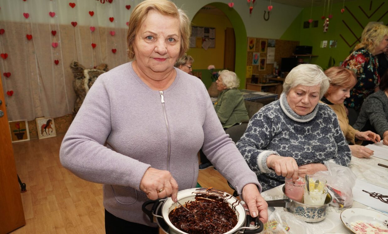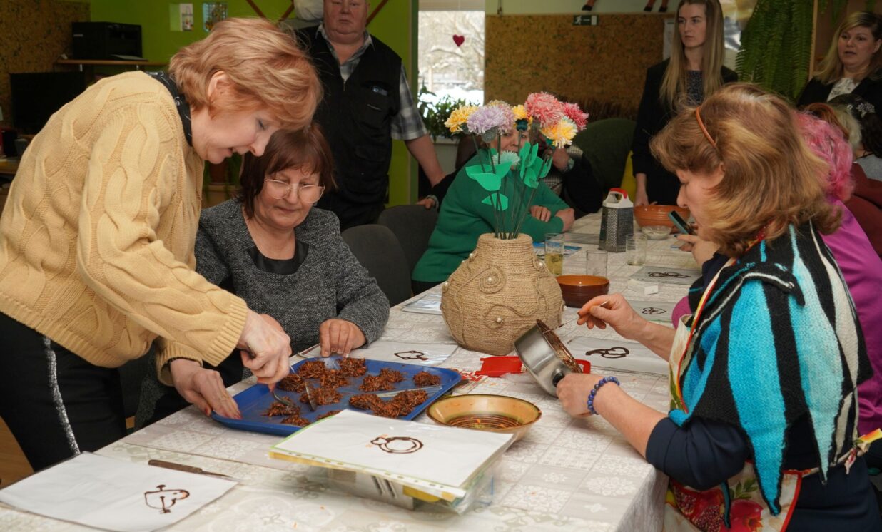 Valentīndienas priekšvakarā centrā smaržoja pēc šokolādes, no kuras tika darināti skaisti svētku dekori. Šo radošo un gardo meistarklasi nodrošināja Latvijas Sarkanais krusts. Gan centra klienti, gan seniori dzirdēja vērtīgu informāciju par šokolādes īpašībām un iespējām to izmantot konditorejā, paši izmēģināja to kausēt un veidot ornamentus, ko vēlāk pildīja ar krāsainu želeju. Tāpat veidoja veselīgus našķus no svaigiem burkāniem un melnās šokolādes.