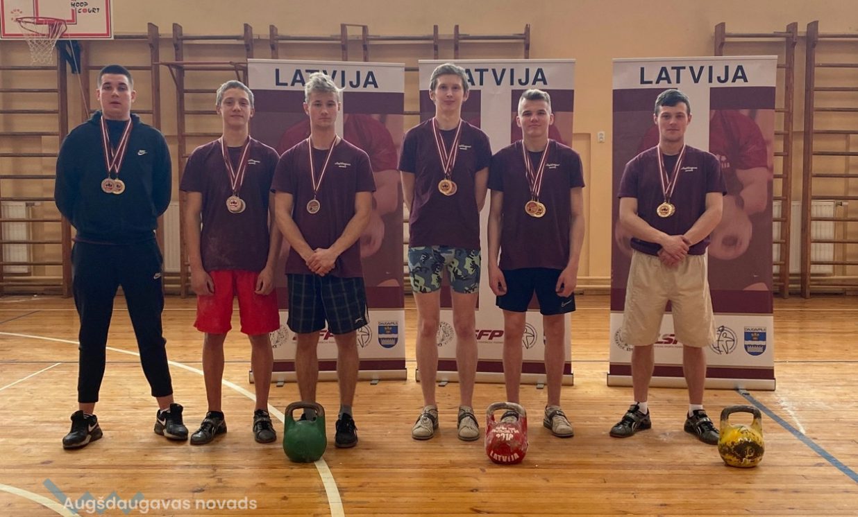 Puišu komandā sacentās un savās svara kategorijās godalgotas vietas izcīnīja: