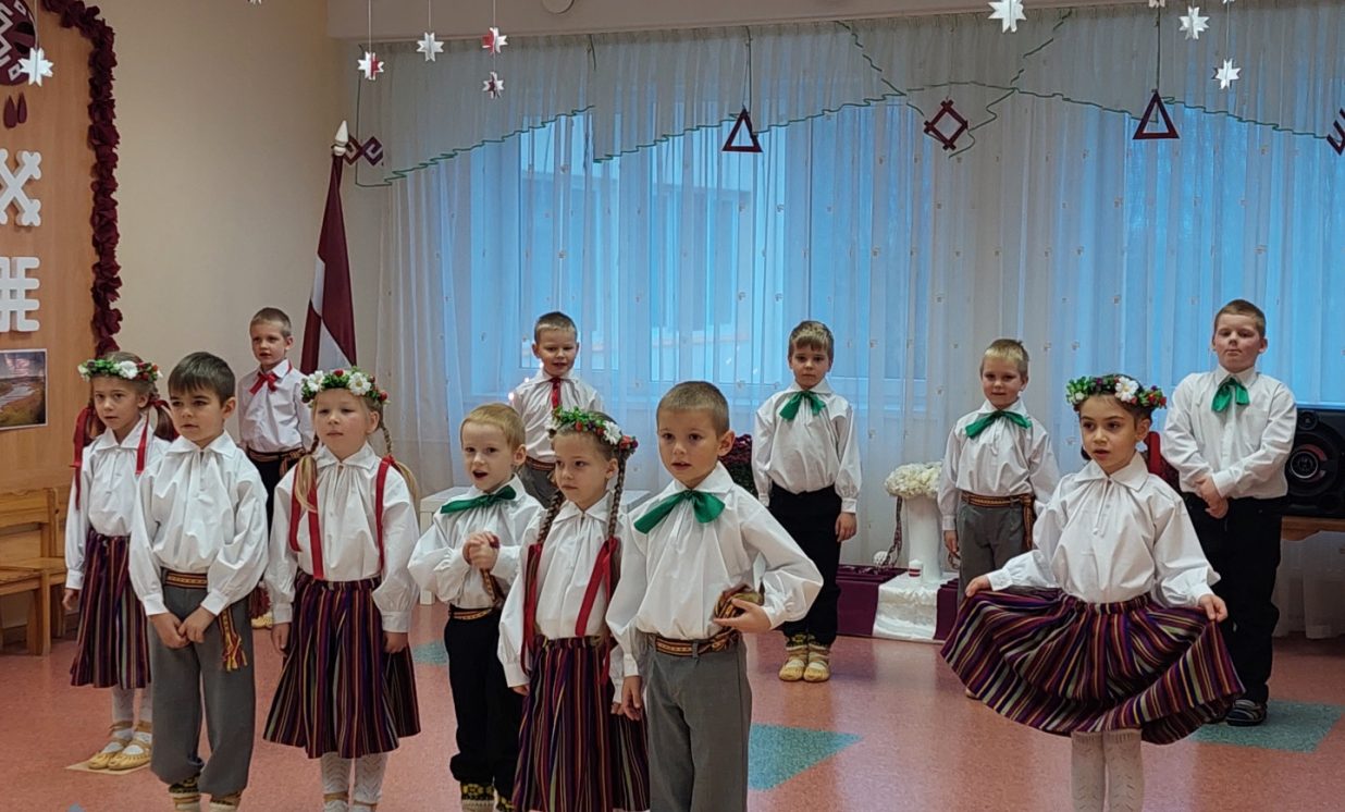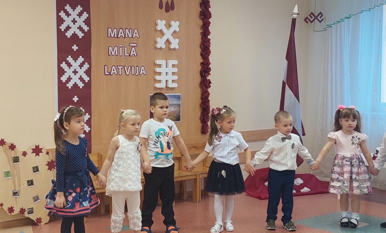 Latvijas dzimšanas dienu atzīmējām visu nedēļu. Svinīgas un priecīgas bija šīs dienas bērnudārzā, kad visiem mugurā bija svētku tērpi un pie apģērba bija piespraustas sarkanbaltsarkanas lentītes. Svētki katra grupiņā notika visas dienas garumā. Ar sirsnīgām, gaišām domām un laimes vēlējumiem savai tēvzemei katrai grupiņai notika mazie koncerti. Dziedot dziesmas, skandējot dzejoļus, ejot rotaļās un dejojot bērni mūsu pirmsskolas iestādē mācās mīlēt savu dzimto zemi, novadu un mājas!