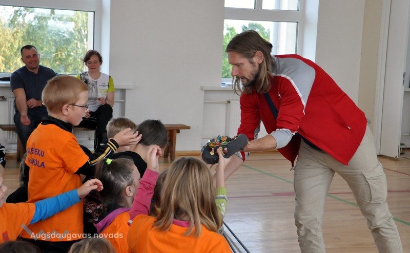 Pēc saistošā stāstījuma, skolēni ar Jēkabu Nākumu labprāt fotografējās un lūdza autogrāfus. Biatlonista vadībā bērni vingroja skolas pagalmā un pēc tam devās sacensties dažāda veida aizraujošās stafetēs.