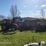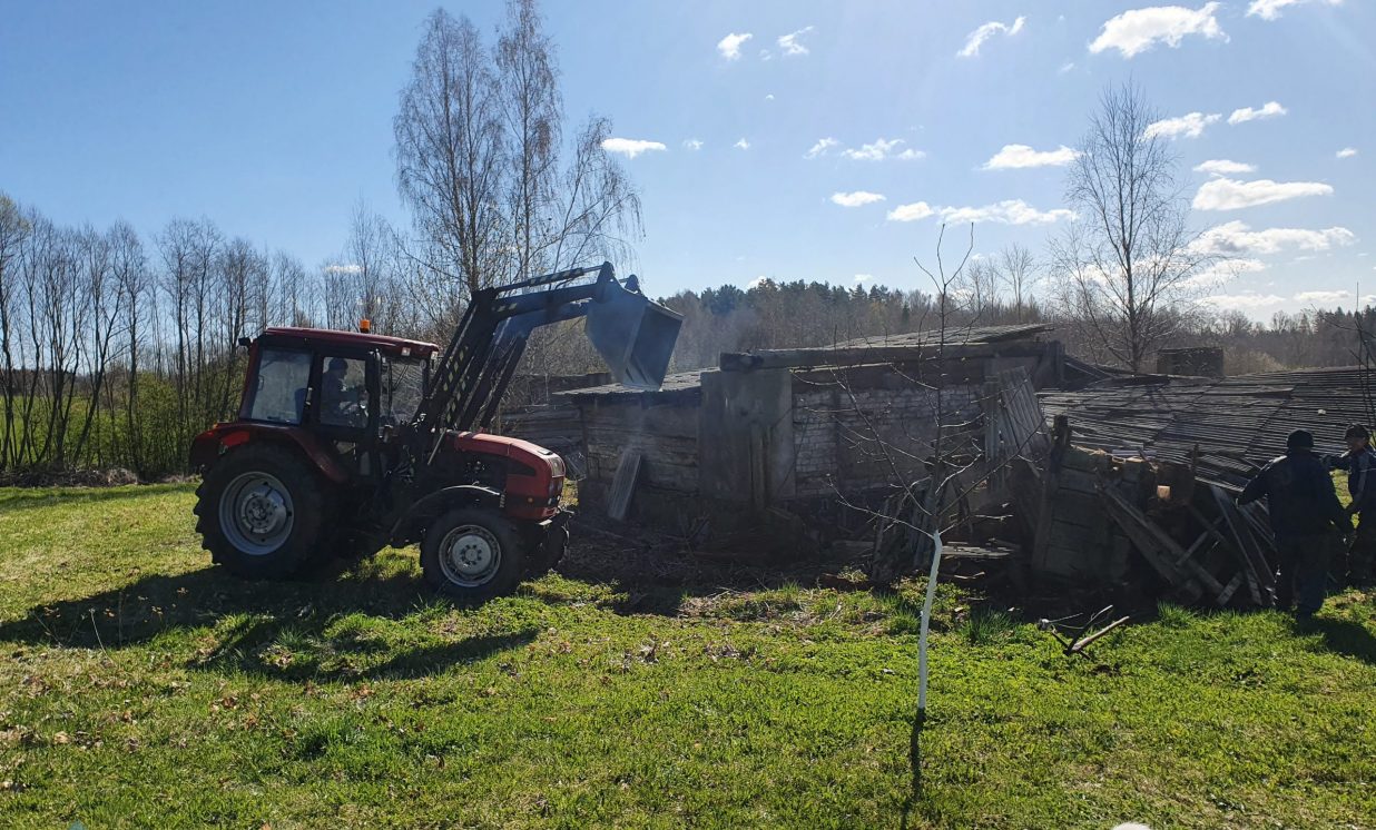 Ar šīferi tika piekrauts pilns kravas vezums. Vēl viens spiediens un vecais šķūnis ir nogāzts. Atliek tikai baļķus sakraut kaudzē.