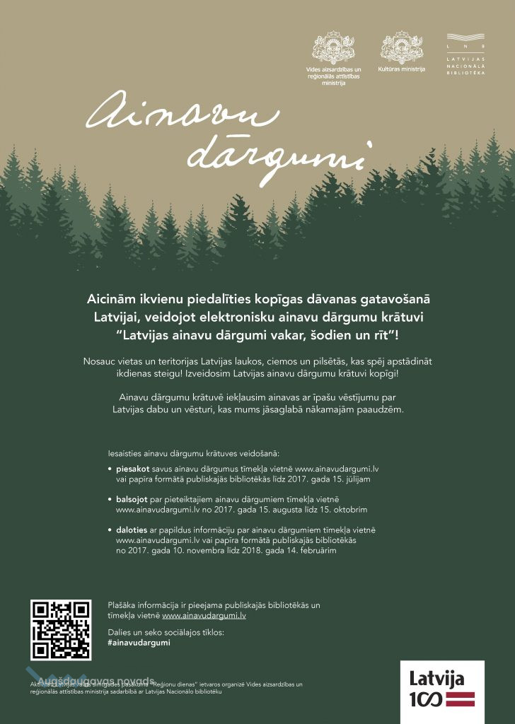 Turpmākajos mēnešos par šīm un citu reģionu ainavām elektroniskajā Ainavu dārgumu krātuvē tiks apkopota informācija, lai atspoguļotu ainavas mainību vairāku desmitu gadu garumā gan fotogrāfiju, gan atmiņu stāstu veidā. Tāpēc aicinām ikvienu no 2017. gada 10. novembra līdz 2018. gada 14. februārim tīmekļa vietnē www.ainavudargumi.lv iesniegt savu atmiņu stāstu, fotoattēlus un ierosinājumus ainavu dārgumu saglabāšanai nākotnei.