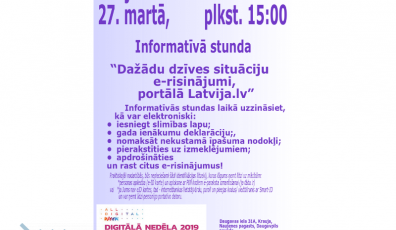 AKTUĀLI14.03.2019Informatīvā stunda “Dažādu dzīves situāciju e-risinājumi, portālā Latvija.lv” Lasīt vairāk
