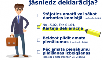 AKTUĀLI19.02.2019Valsts amatpersonas deklarācija par 2018. gadu jāiesniedz līdz 1. aprīlim Lasīt vairāk