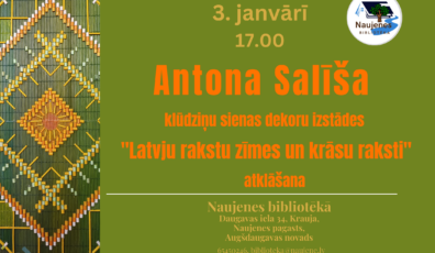AKTUĀLI19.12.2024Mākslinieka Antona Salīša klūdziņu sienas dekoru izstādes “Latvju rakstu zīmes un krāsu raksti” atklāšana Lasīt vairāk