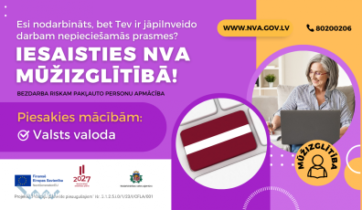 Sociālais darbs un veselība17.01.2024NVA aicina pieteikties valsts valodas programmu bezmaksas apguvei Lasīt vairāk