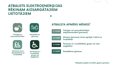 Aizsargātie lietotāji no 1.janvāra turpinās saņemt palielināto atbalstu elektrības rēķinu segšanai