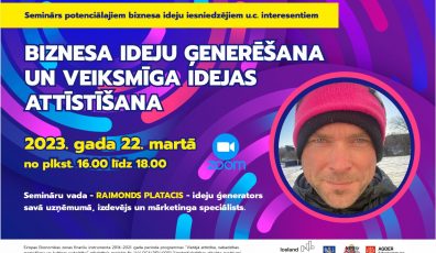 Uzņēmējdarbība09.03.2023Vēl 10 dienas var pieteikties biznesa pirmsinkubācijas programmai Lasīt vairāk