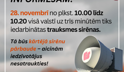 VUGD 28. novembrī veiks trauksmes sirēnu pārbaudi