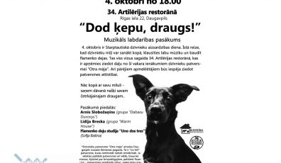 Kultūra29.09.2017Dzīvnieku patversme “OTRĀ MĀJA” rīko muzikālu labdarības pasākumu “Dod ķepu, draugs!” Lasīt vairāk