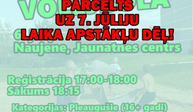 Dvieļu volejbols Naujenē pārcelts uz 7. jūliju!