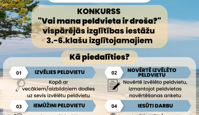 AKTUĀLI03.07.20233.-6.klašu skolēniem iespēja piedalīties konkursā “Vai mana peldvieta ir droša”! Lasīt vairāk