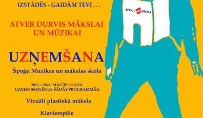 AKTUĀLI16.06.2023Špoģu Mūzikas un mākslas skola uzsāk izglītojamo uzņemšanu 2023./2024. mācību gadam Lasīt vairāk