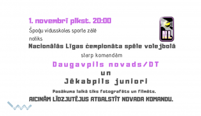 Nacionālās Līgas čempionāta spēle volejbolā 1. novembrī