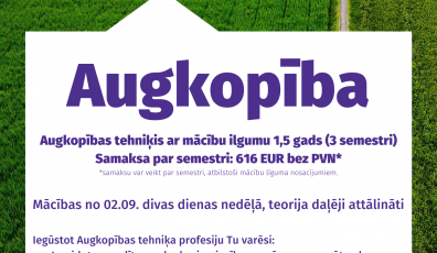 Izsludināta uzņemšana neklātienes mācību programma augkopībā