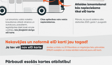 Pašvaldība14.12.2022Atvieglojumu izmantošanai sabiedriskajā transportā būs jāreģistrē tikai derīga eID karte Lasīt vairāk