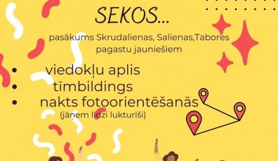 Jaunatnei16.08.2022Pasākums Salienas, Skrudalienas, Tabores pagastu jauniešiem “TURPINĀJUMS SEKOS…” Lasīt vairāk