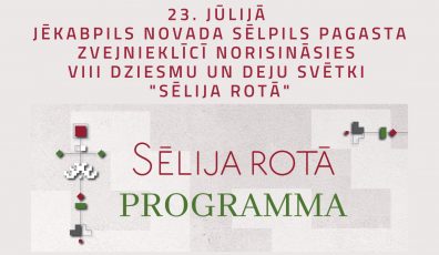 Kultūra22.07.202223. jūlijā Jēkabpils novada Sēlpils pagasta Zvejnieklīcī norisināsies III Dziesmu un deju svētki “Sēlija rotā” Lasīt vairāk